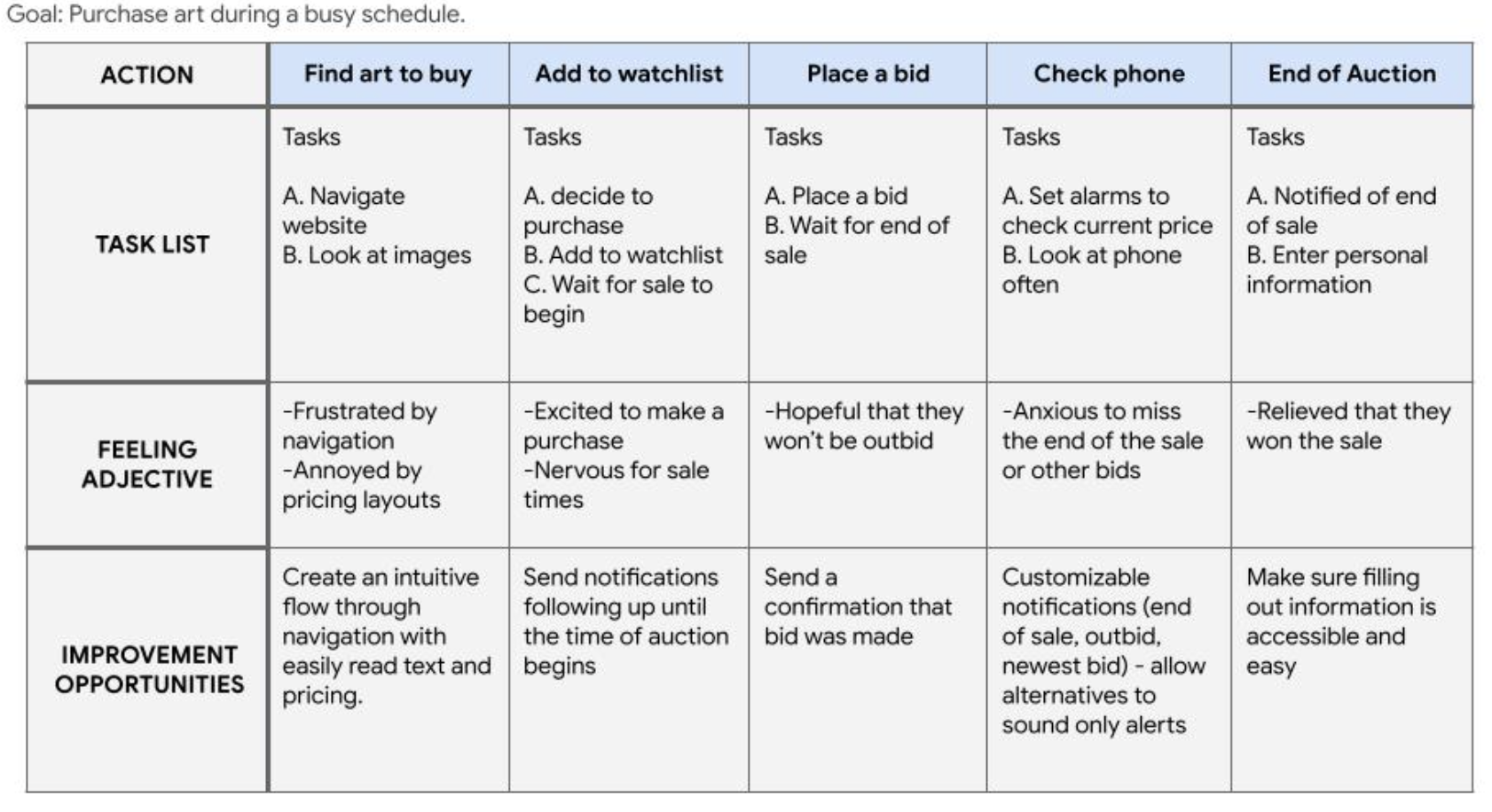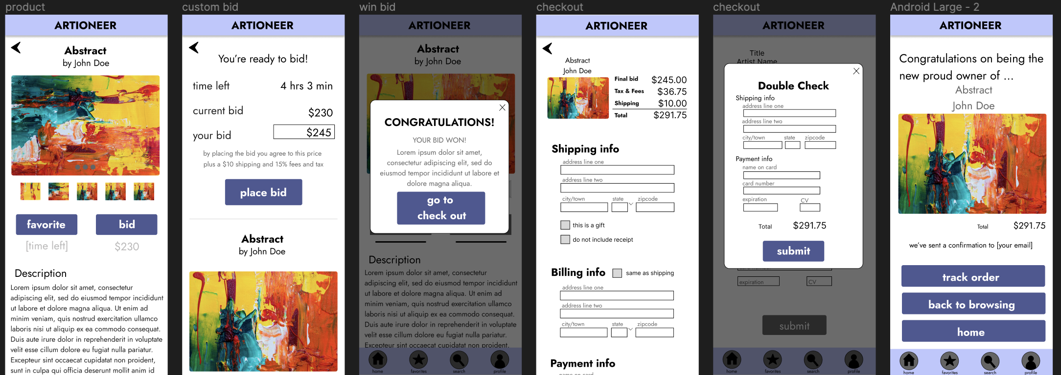 Case Study for a mobile app that allows art galleries and art collectors to participate in art auctions (concept).