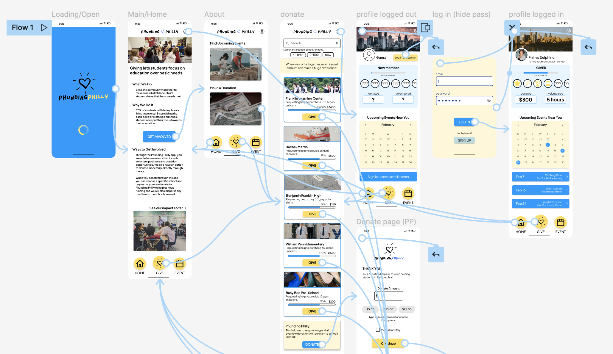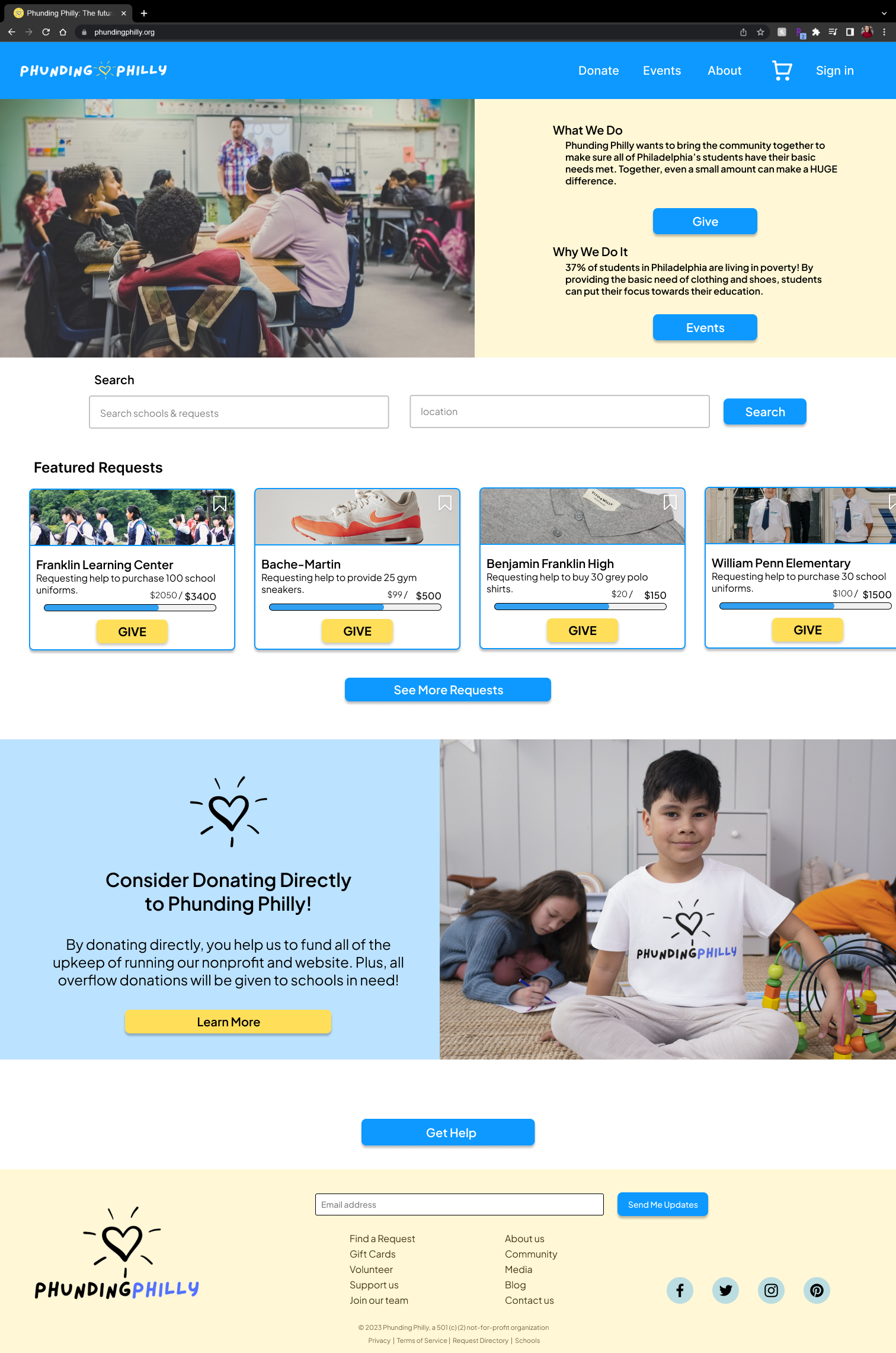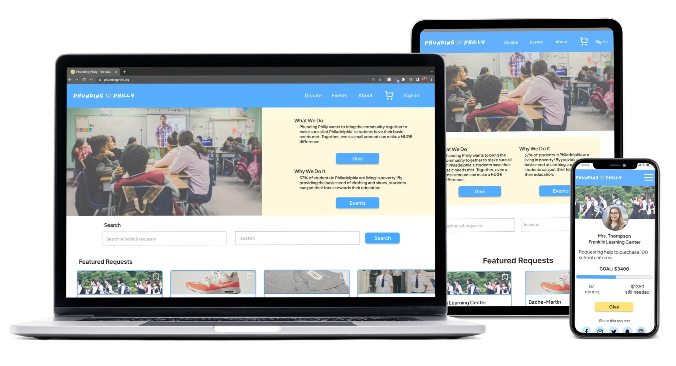 Case Study for a dedicated mobile app and a responsive website designed for a concept nonprofit to help Philly schools with funding.